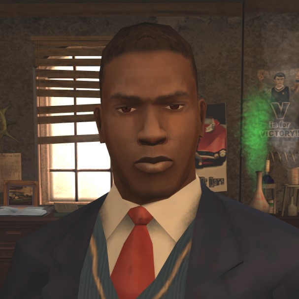 Судя по неиспользованным диалогам, он должен был появится в миссии "Хаттрик против Гэллоуэя", скорее всего, преследуя Джимми, заметив у него бутылку Гэллоуэя.