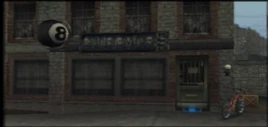 The pool tables are gone, but the Greasers have dragged in a few couches, a television, and a mattress for sleeping. The door to the women's bathroom can be kicked open and there is still a working toilet-bowl in the bathroom. In the southeastern section is a small bar where Jimmy can save the game. An arcade console for Monkey Fling is also located here.