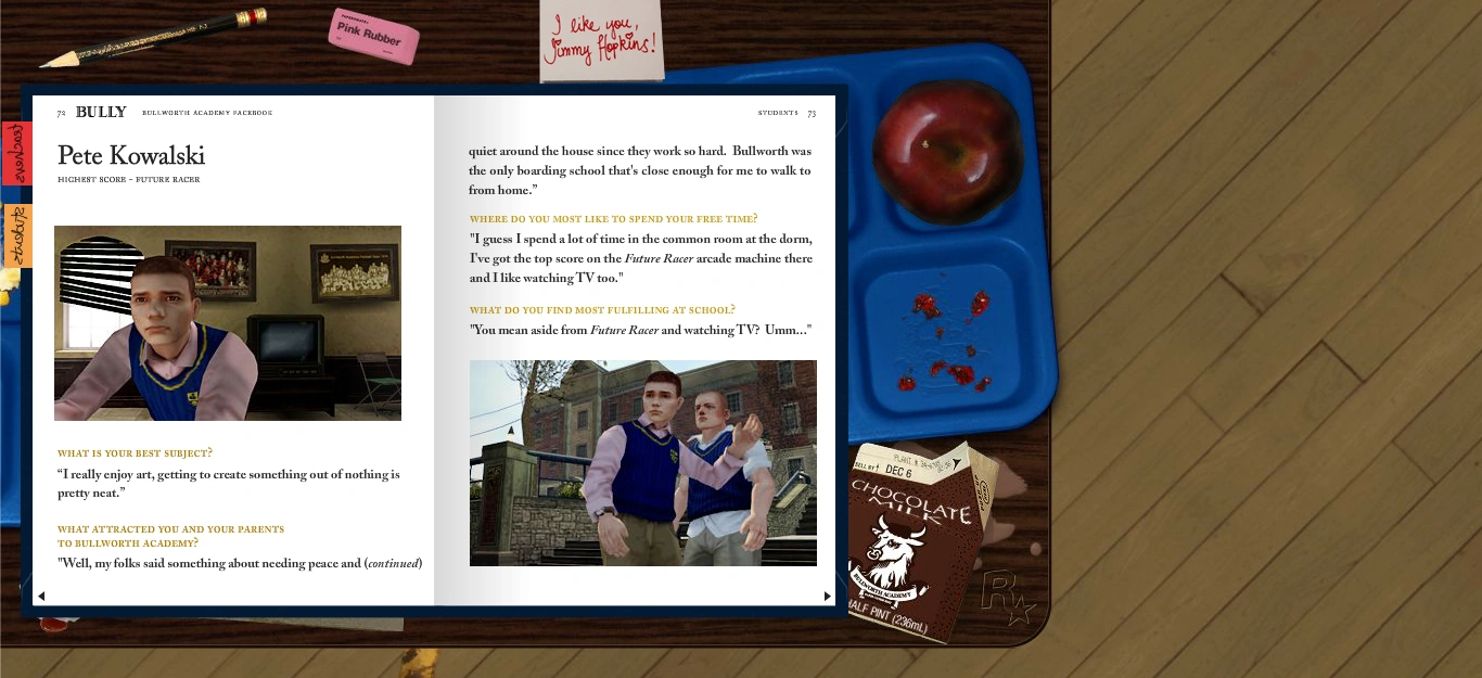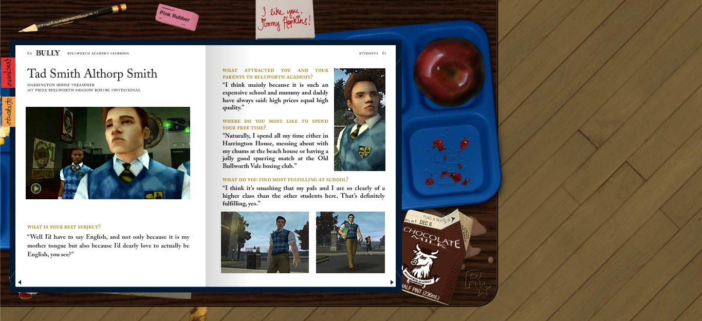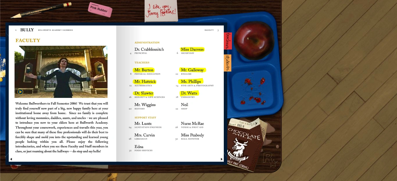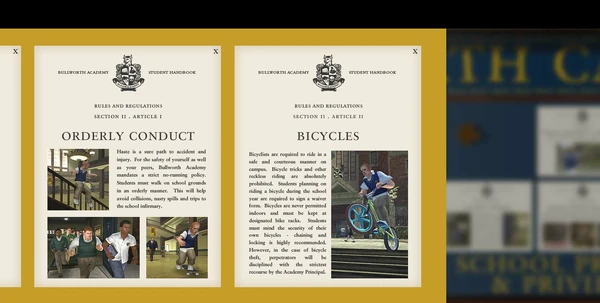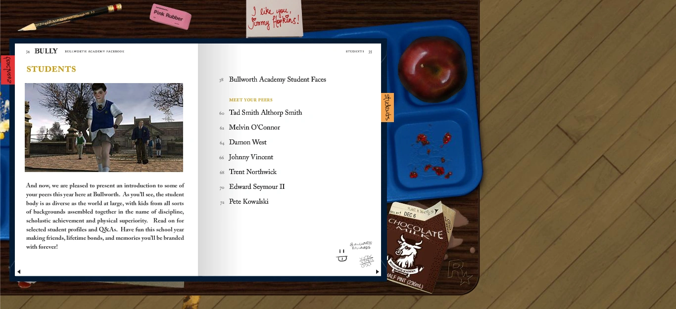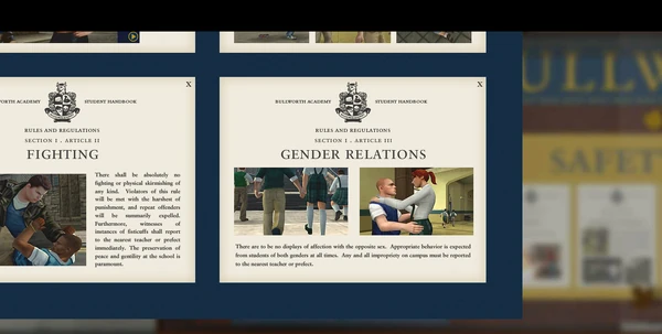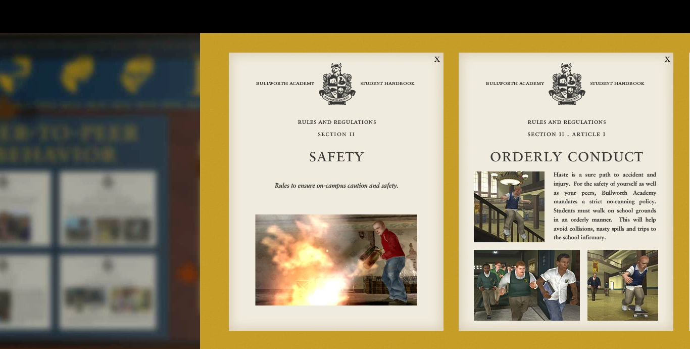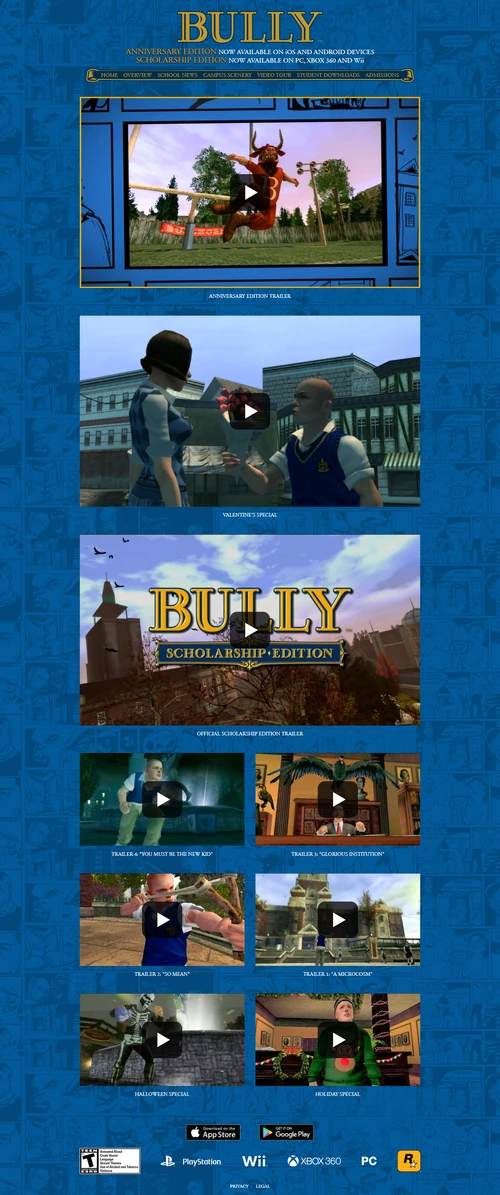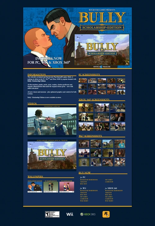 Rockstargames.com/Bully is the URL for the official promotional website for Bully, owned and operated by Rockstar Games. The Flash website, containing the Bullworth Academy Prospectus, Facebook and Rules, went offline at some point before 2015. Later the full Flash website went down due to end of support for the Adobe Flash Player on December 31, 2020.